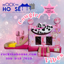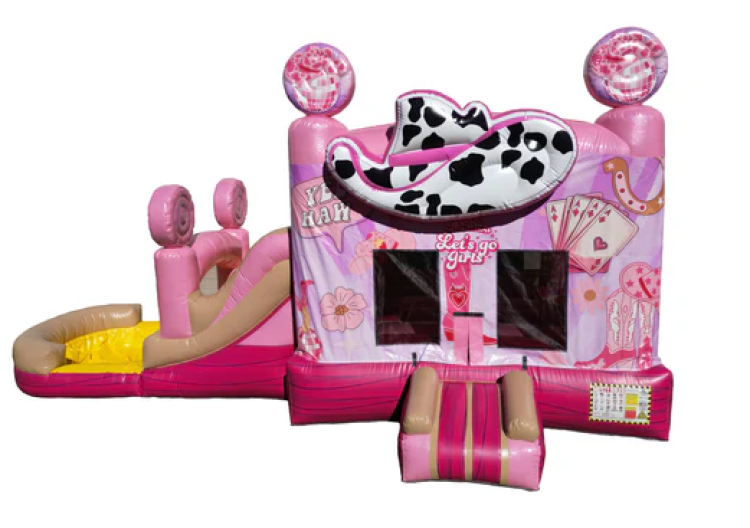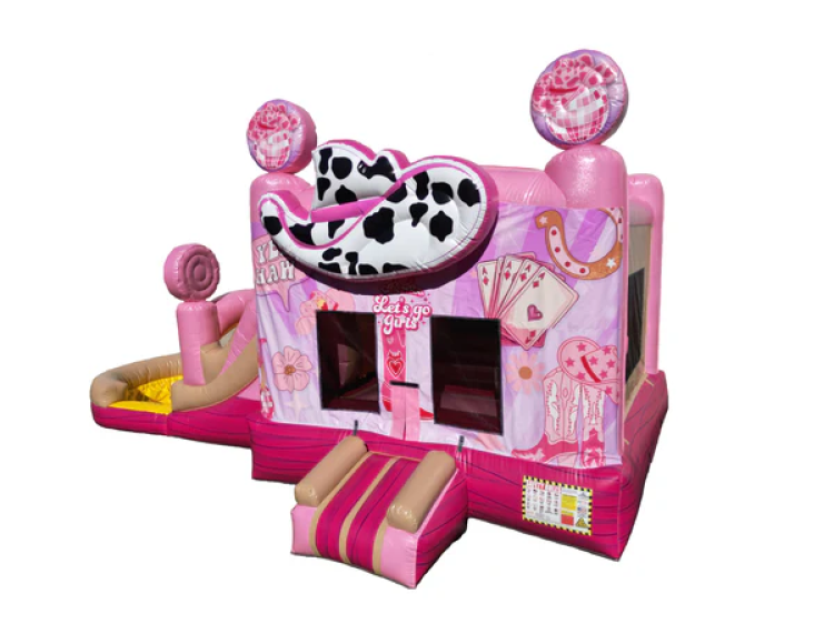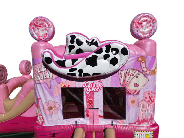 Bring the Wild West to your next event with the Cowgirl Combo — a charming, all-in-one inflatable that combines a roomy bounce area with obstacles and a slide for nonstop fun. Perfect for birthday parties, school events, or backyard gatherings, this combo unit gives kids plenty of space to jump, race through playful challenges, and zoom down a safe slide. Its bright, western-themed look adds instant atmosphere while keeping the action contained and easy to supervise.