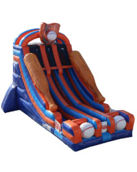 Bring big-time thrills to your event with the 20ft Batter Up Dual Lane Slide — a high-energy inflatable slide built for two riders to race side-by-side. Perfect for backyard parties, school events, church functions, or community festivals, this slide lets guests compete for the fastest descent while enjoying the safety and padding of an inflatable landing. The dual-lane design keeps lines moving and doubles the fun, allowing friends and siblings to slide together. Durable, brightly colored vinyl. The Batter Up Dual Lane Slide delivers excitement, friendly competition, and memorable photo moments for kids and teens.